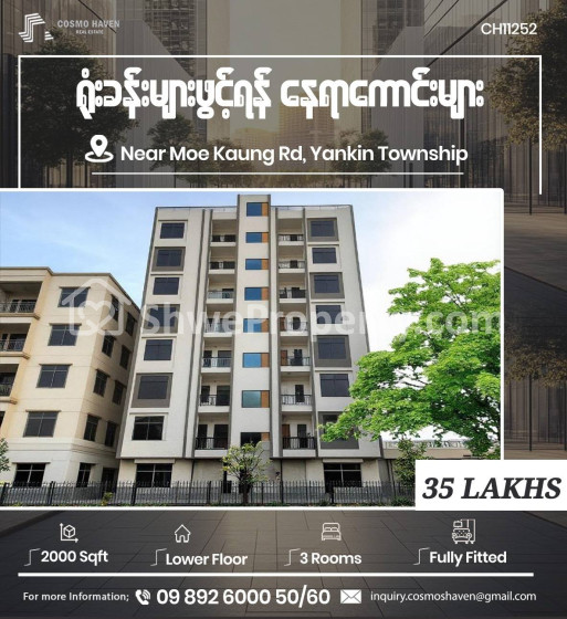 3 bedroom, 3 bathroom Shop for rent in Yankin, Yangon
