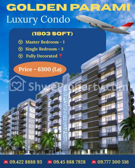 📌လှိုင်မြို့နယ် #MICT_Parkအနီး ပါရမီလမ်းမကြီးပေါ် ရှိ Golden Parami Condoမှ #ရှယ်ပြင်ဆင်ထားသော အရောင်းခန်းလေးနှင့် မိတ်ဆက်ပေးပါရစေ......📍