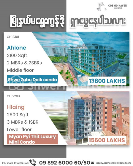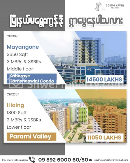 🎈ဒါဆိုရင်တော့ အခန်းကျယ်မှ ကြိုက်သောလူကြီးမင်းမျာအနေနဲ့ အခုဘဲ ကျွန်တော်တို့ Cosmo haven အိမ်ခြံမြေCompany ကိုဆက်သွယ်လိုက် ပါ ခင်ဗျာ