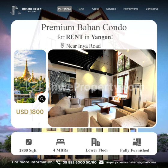 We are serving not only the more high-end condominiums for rent or sales in this area but also around Yangon, don’t be hesitate to call for the most efficient One Stop services (24 Hours) .