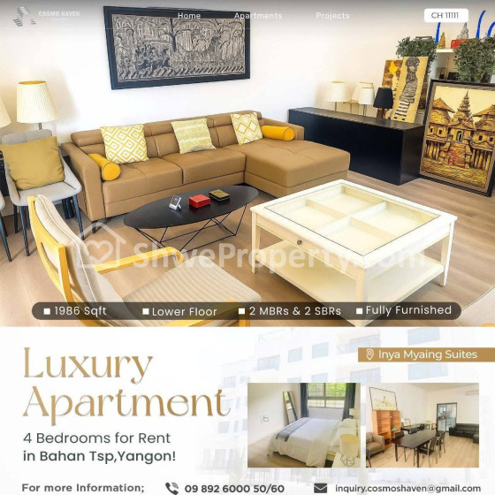 Locate luxurious living in Four-Bedrooms Inya Myaing Suites featuring a modern & classic design at Golden Valley 🪴!