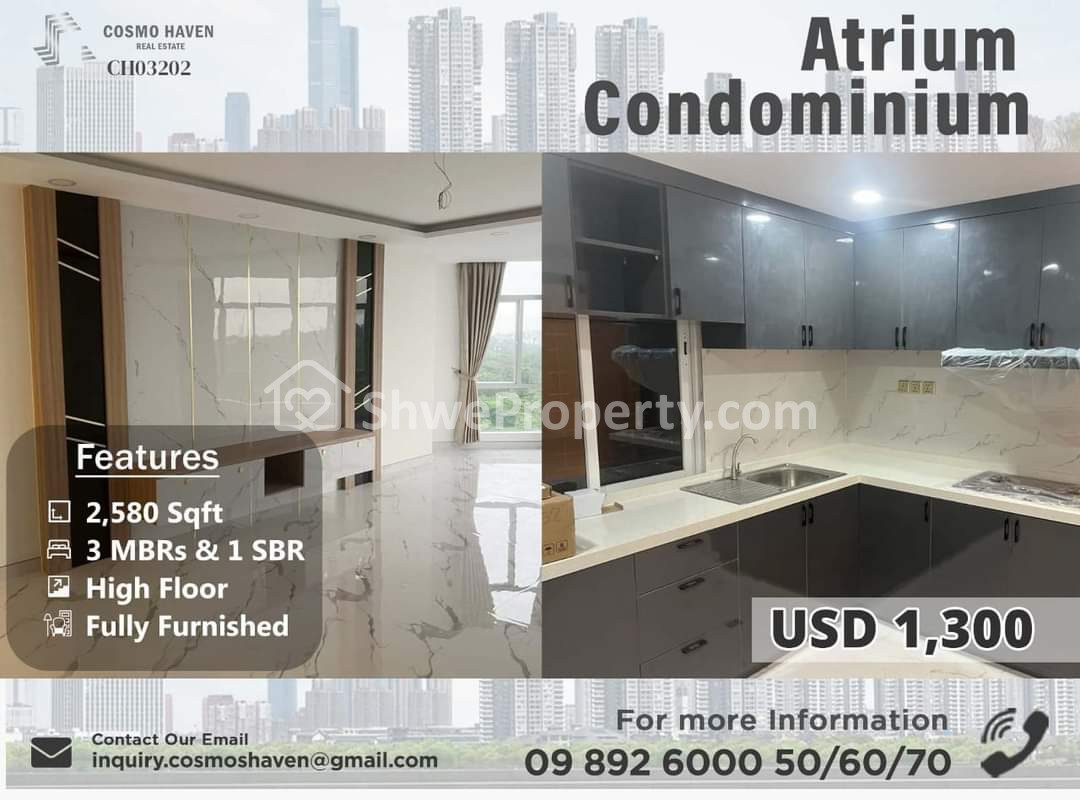 Property Name : Atrium Condominium for Rent Mingalar Taung Nyunt Township in Yangon