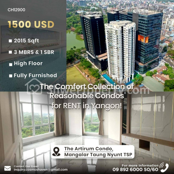 Property Name : ရန်ကုန်မြို့နယ်ရှိမြို့နယ်စုံကွန်ဒိုအငှားများ/The Artirum Condominium for Rent Mingalartaungnyunt Township in Yangon