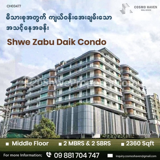 Property Name : အလုံမြို့နယ်ရှိ Shwe Zabu Deik Condominiumအရောင်း/Shwe Zabu Deik Condominium for Sales Ahlone Township in Yangon