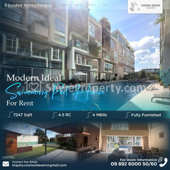 Property Name : Modern Cluster Pool House for Rent Golden Valley, Bahan Tsp in Yangon