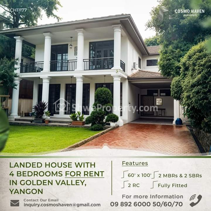 Landed House with 4 Bedrooms for Rent In Golden Valley, Yangon🙋♂