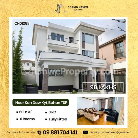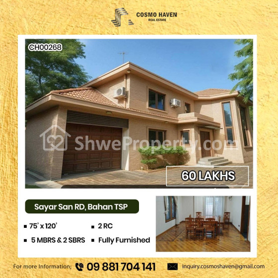 Property Name : ဗဟန်းမြို့နယ်ရှိနေရာကောင်းလုံးချင်းအိမ်ကောင်းအငှားများ/Landed House for Rent Bahan Township in Yangon/09892600050,09892600060