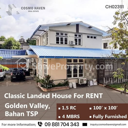 Classic 1.5 RC Landed House for RENT @Golden Valley @Bahan Twonship 🏠🔑