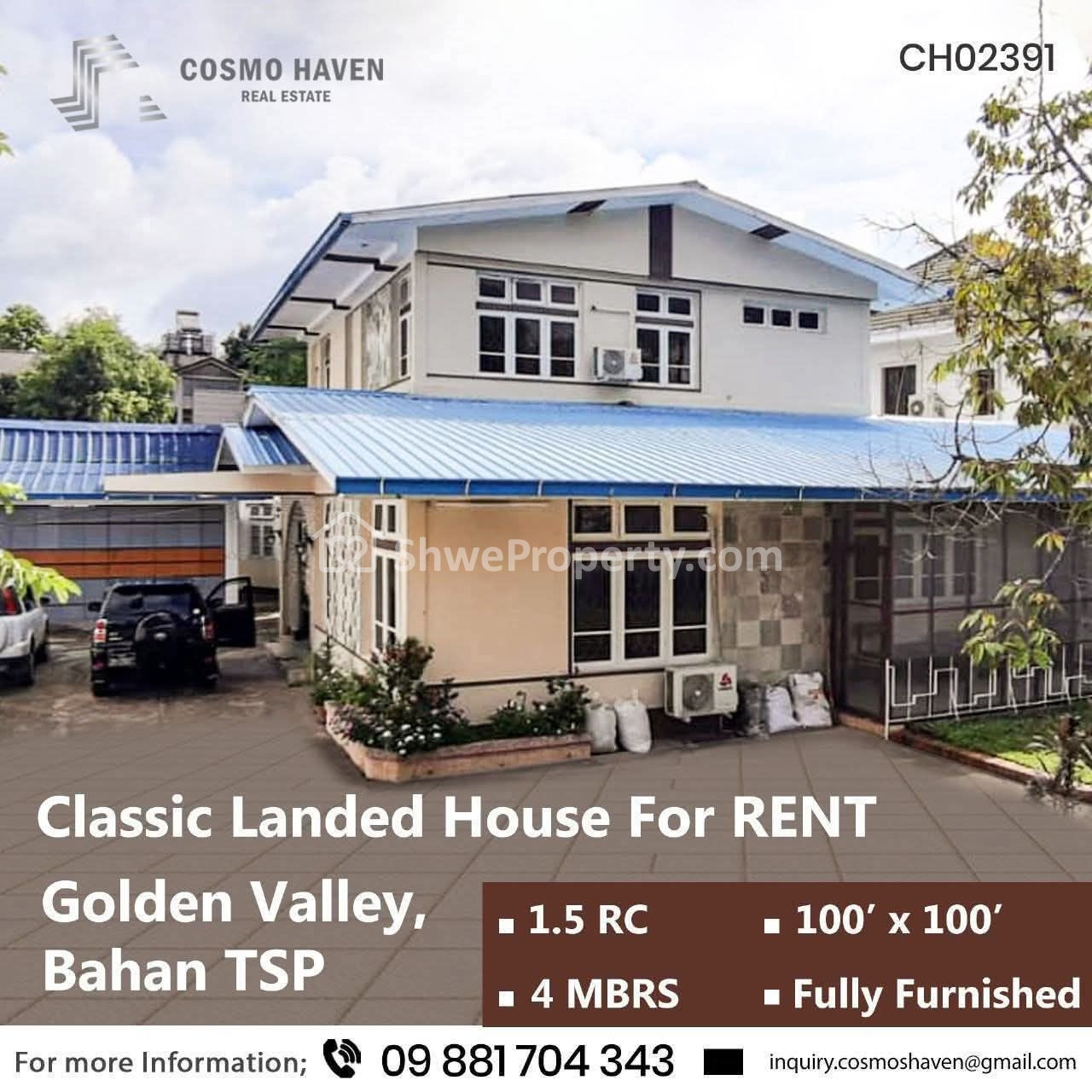 Property Name : ဗဟန်းမြို့နယ်ရှိနေရာကောင်းလုံးချင်းအိမ်ကောင်းအငှား/Landed House for Rent Bahan Township in Yangon/09892600050,09892600060
