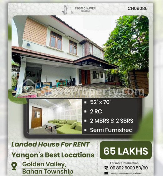 Property Name : စျေးနှုန်းသင့်တင့်Furniture အပြည့်အစုံပါရှိသောလုံးခြင်းအိမ်အငှား/Landed House for Rent Bahan Township in Yangon