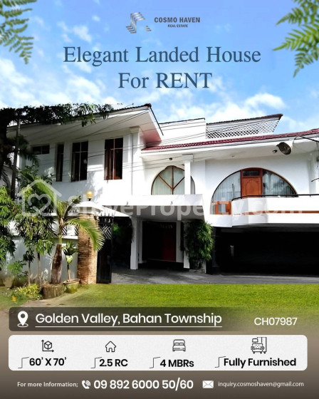 Charming & Elegant Style Landed House for RENT 🏡 @Golden Valley, Bahan Tsp 📍