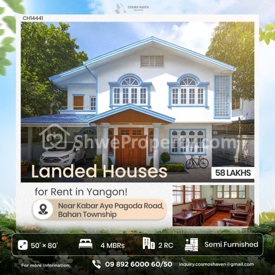 Property Name : ရန်ကုန်မြို့နယ်ရှိနေရာစုံနေရာကောင်းလုံးချင်းအိမ်ကောင်းအငှားများ/Landed House For Rent In Yangon/09892600050,09892600060
