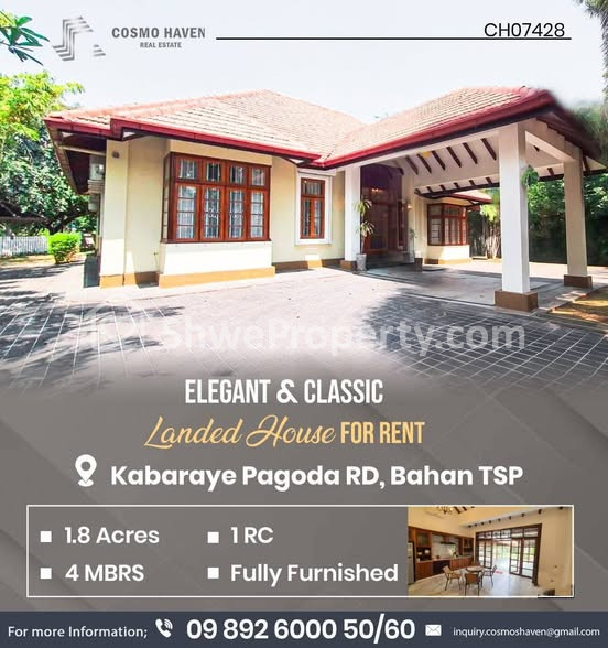 Property Name : ဗဟန်းမြို့နယ်ရှိနေရာကောင်းလုံးချင်းအိမ်ကောင်းအငှား/Landed House for Rent Bahan Township in Yangon/09892600050,09892600060