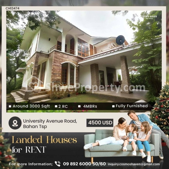Property Name : ရန်ကုန်မြို့နယ်ရှိမြို့နယ်စုံနေရာကောင်းလုံးချင်းအိမ်ကောင်းအငှားများ/Landed House For Rent In Yangon/09892600050,09892600060