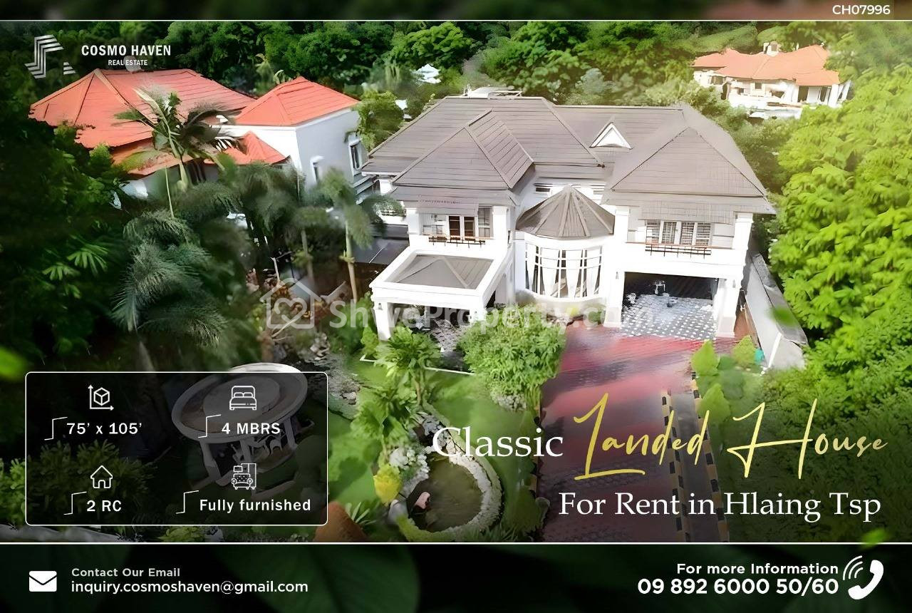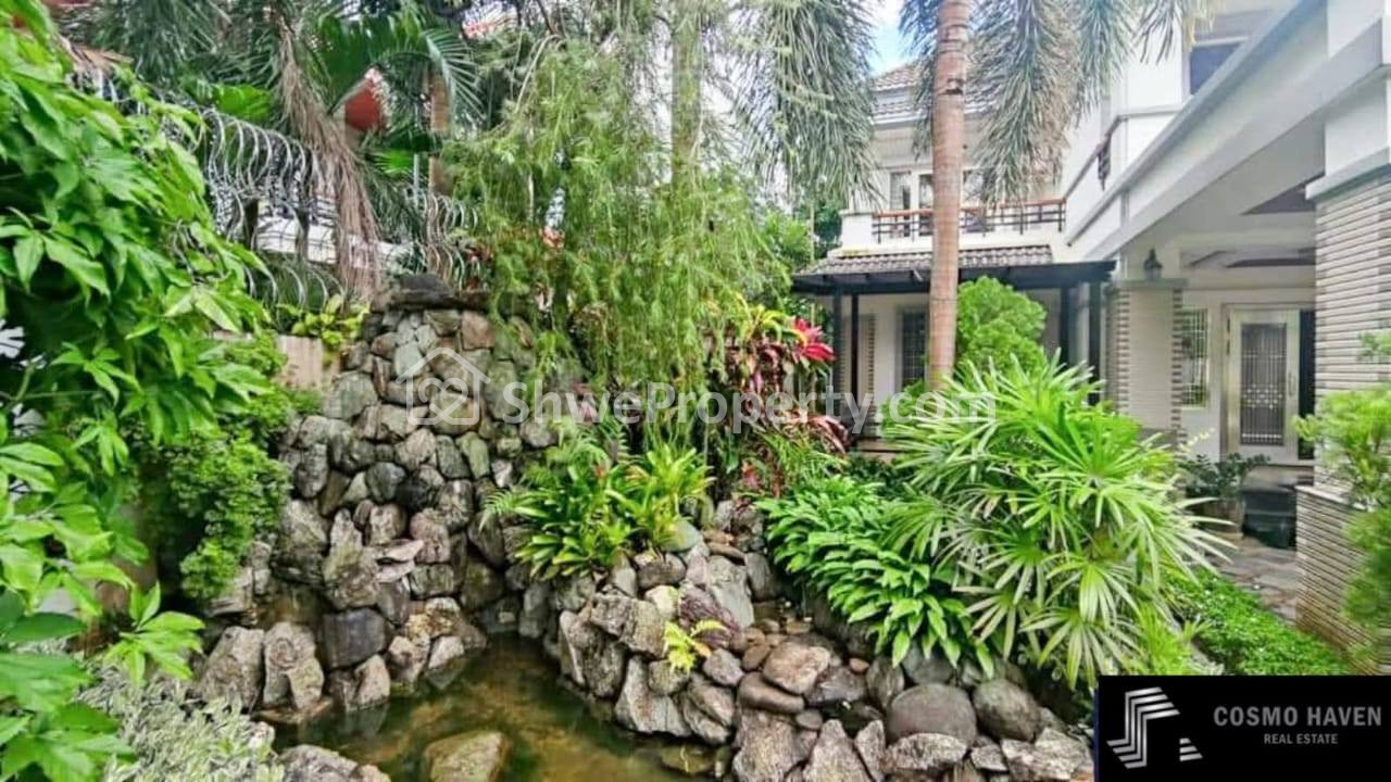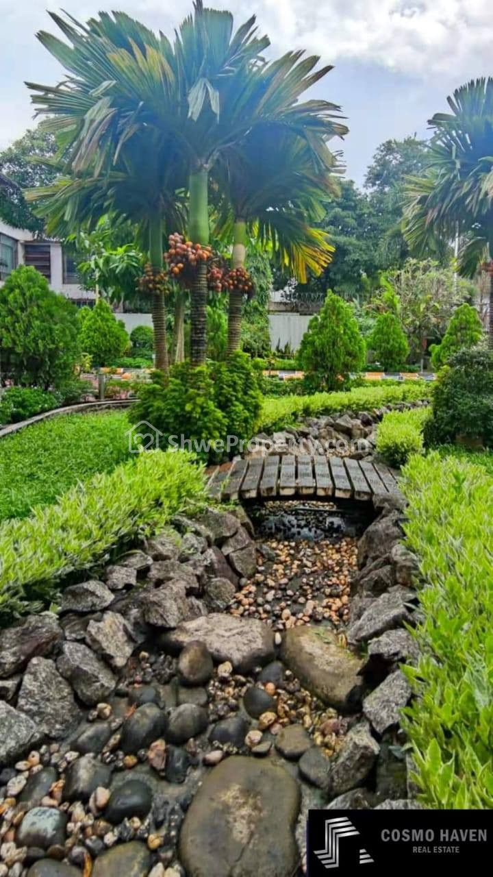 Welcome to the 4-bedroom mansion surrounded by a peaceful green garden🏞 Situated near Inya Lake, ⛳providing plenty of space for relaxation and entertainment🍃A Beautifully maintained garden that offers a retreat for relaxation and outdoor activities🌫Perfect for families seeking privacy👨👩👧👦, This 8000 Sqft Building has wide, elegant interior perfect and move in effortlessly with stylish and high-quality furniture🛋 Enjoy the peace of mind with round-the-check security✨