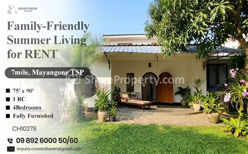 🌿 အပင်စိမ်းလန်းမှုတွေနဲ့ ဝန်းရံထားပြီး #summervibe လေးနဲ့ 🌅 #အေးချမ်းစွာနေထိုင်နိုင်မယ့် #မိသားစုအတွက် #အထူးသင့်တော်တဲ့ 👨👩👧👦 #အိပ်ခန်း၄ခန်းပါပြီး အချက်အချာကျတဲ့ #၇မိုင် #၁ထပ်တိုက်လုံးချင်းအိမ်လေးကို 🏡✨ ငှားရမ်းနေထိုင်လိုသော လူကြီးမင်းများအတွက် ရွေးချယ်တင်ပြလိုက်ပါတယ်နော် 🔑