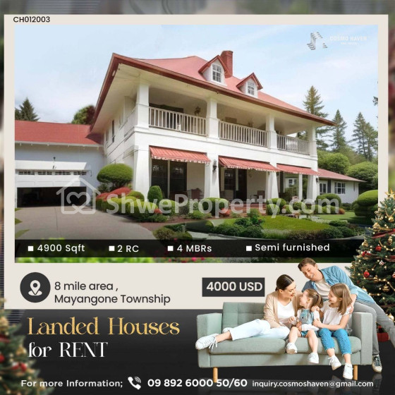Property Name : ရန်ကုန်မြို့နယ်ရှိမြို့နယ်စုံနေရာကောင်းလုံးချင်းအိမ်ကောင်းအငှားများ/Landed House For Rent In Yangon/09892600050,09892600060