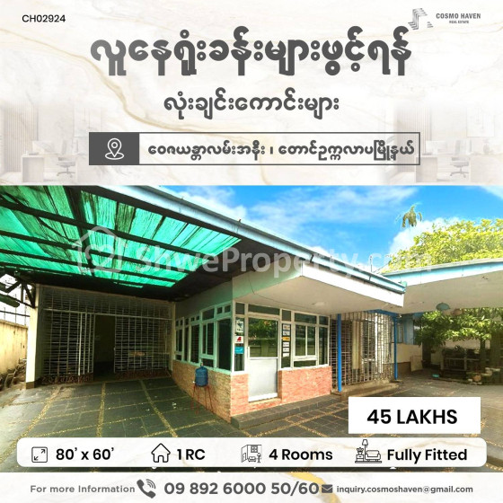 Property Name : လူနေရုံးခန်းများဖွင့်ရန်အတွက်နေရာကောင်းလုံးချင်းအိမ်အငှားများ/Landed House For Rent In Yangon/09892600050,09892600060