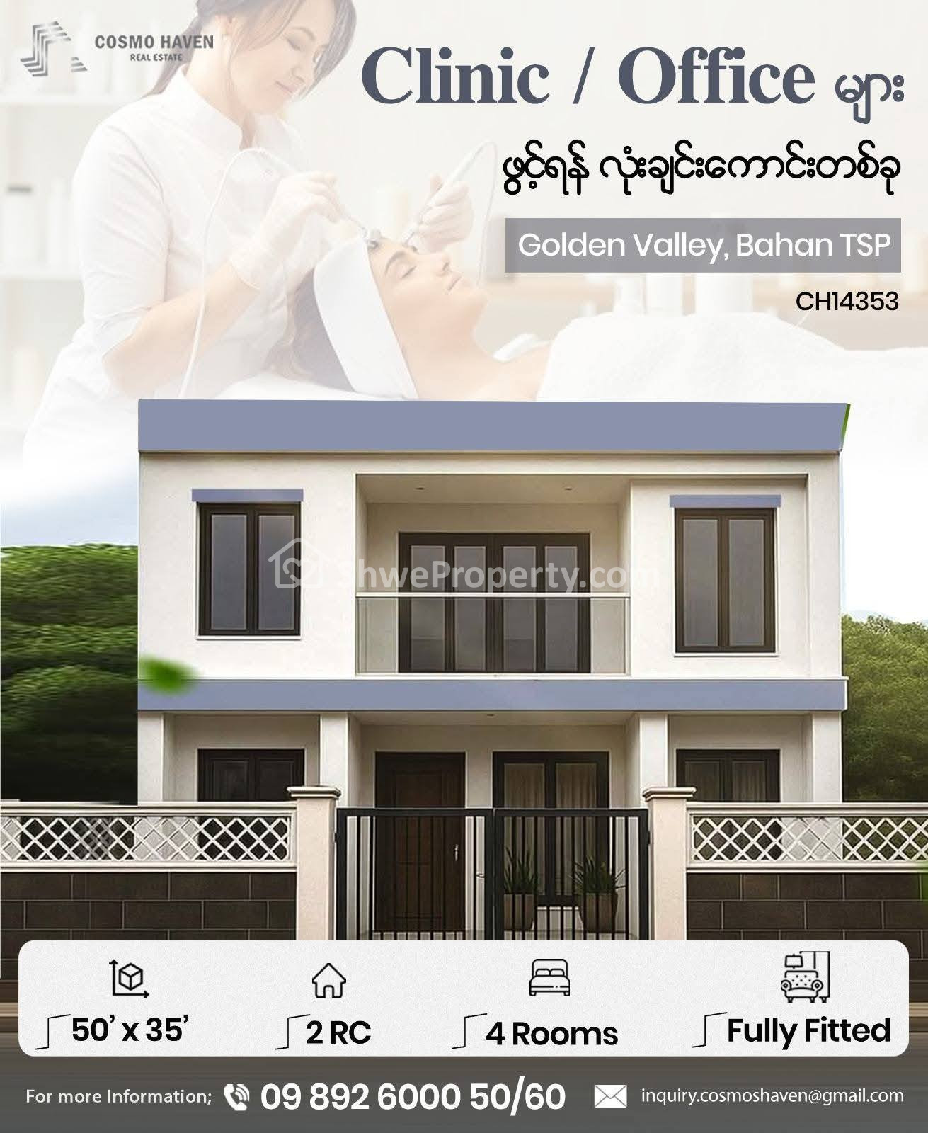 Property Name : Aesthetic Clinic များ ၊Office များဖွင့်ရန် နေရာကောင်းတစ်ခု/Office for Rent Bahan Township in Yangon/09892600050,09892600060