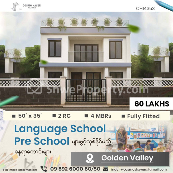 🈵🈵🈵 Language Centre,🏫Pre - School 🏨Training Centreများကို ရန်ကုန်မြိုရှိ မြိုနယ်စုံနေရာကောင်းများတွင် ဖွင့်လှစ်ချင်တဲ့လူကြီးမင်းများအတွက် သွားလာရလွယ်ကူပြီး၊ လူစည်ကားသည့် နေရာများတွင်ဖြစ်လို လုပ်ငန်းရှင်လူကြီးမင်းတို့ အချိန်မကုန်ဘဲရွှေးချယ်နိုင်စေရန် Cosmo Haven မှတစုတစည်းတည်းဖော်ပြပေးလိုက်ပါတယ်ခင်ဗျာ။