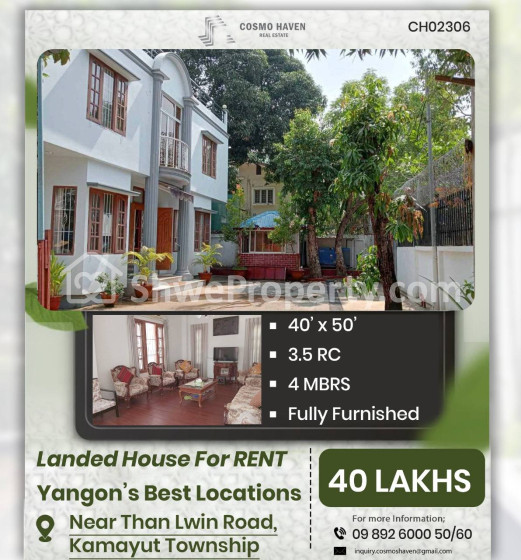 Property Name : စျေးနှုန်းသင့်တင့်Furniture အပြည့်အစုံပါရှိသောလုံးခြင်းအိမ်အငှားများ/Landed House for Rent in Yangon