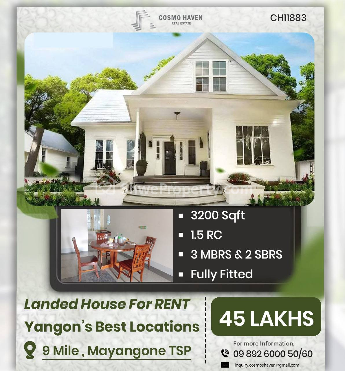 အနီးအနားပတ်ဝန်းကျင်မှာ 🛍 Super Market ၊ Restaurant ♨⛩🏰၊ 🏦ဘဏ်၊ 🏥ဆေးရုံနှင့် 👩🎓International School များ တည်ရှိပြီး အဆင်သင့်နေထိုင်ရုံ ပြင်ဆင်ထားသော လုံးခြင်းအိမ်များ ဖြစ်တာကြောင့် အမြန်ဆုံးငှားရမ်း နေထိုင်နိုင်ဖို့အတွက် Cosmo Haven Real Estate မှရွေးချယ်တင်ပြပေးလိုက်ပါတယ်ရှင်