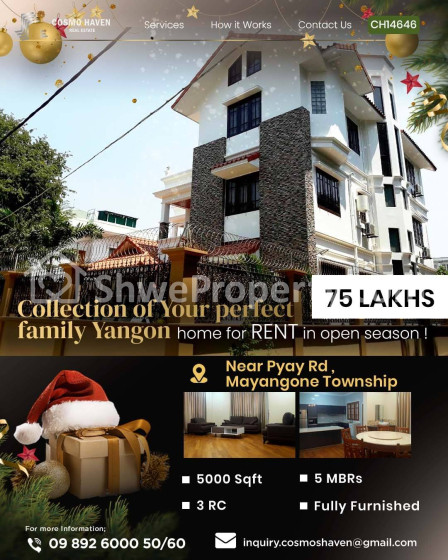 5 bedroom, 5 bathroom Privatehouse for rent in Mayangone, Yangon