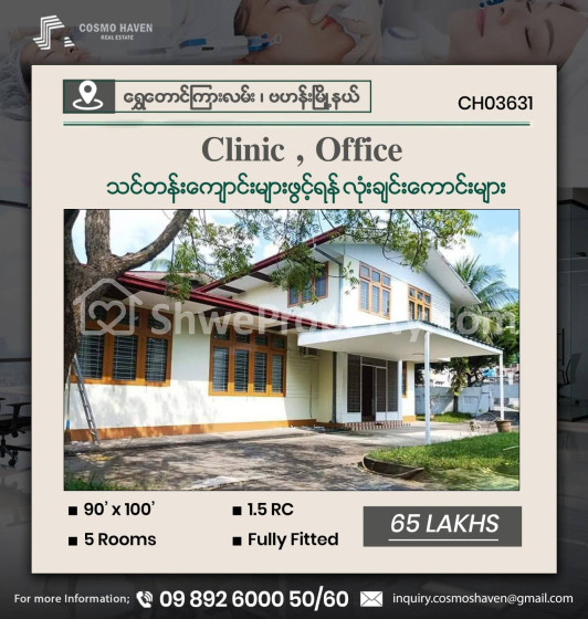 ☀️☀️☀️ 🏗️ရုံးခန်း🏠၊ Clinic 💒နှင့် သင်တန်းကျောင်းများ🏯ဖွင့်လှစ်ရန်အတွက် ရန်ကုန်မြို့ရဲ့ အချက်ချာကျတဲ့ နေရာများတွင် တည်ရှိပြီး ဝန်ထမ်းများအတွက် သွားလာရလွယ်ကူအဆင်ပြေစေတဲ့ 💸💸 သိန်း ၃၀ မှ သိန်း ၁၅၀ 💸💸အတွင်းရှိ လုံးချင်းကောင်းများကို လူကြီးမင်းတို့စိတ်ကြိုက် အချိန်ကုန်သက်သာစွာ ရွေးချယ်နိုင်ရန် Cosmo Haven မှတစုတစည်းတည်းဖော်ပြပေးလိုက်ပါတယ်ရှင့်။🎄🎄🆙️🆙️