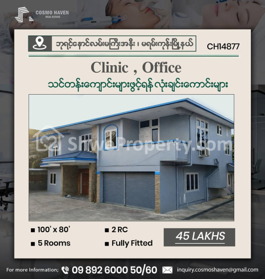 ☀️☀️☀️ 🏗️ရုံးခန်း🏠၊ Clinic 💒နှင့် သင်တန်းကျောင်းများ🏯ဖွင့်လှစ်ရန်အတွက် ရန်ကုန်မြို့ရဲ့ အချက်ချာကျတဲ့ နေရာများတွင် တည်ရှိပြီး ဝန်ထမ်းများအတွက် သွားလာရလွယ်ကူအဆင်ပြေစေတဲ့ 💸💸 သိန်း ၃၀ မှ သိန်း ၁၅၀ 💸💸အတွင်းရှိ လုံးချင်းကောင်းများကို လူကြီးမင်းတို့စိတ်ကြိုက် အချိန်ကုန်သက်သာစွာ ရွေးချယ်နိုင်ရန် Cosmo Haven မှတစုတစည်းတည်းဖော်ပြပေးလိုက်ပါတယ်ရှင့်။🎄🎄🆙️🆙️