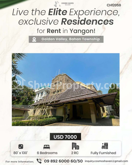 6 bedroom, 6 bathroom Privatehouse for rent in Bahan, Yangon