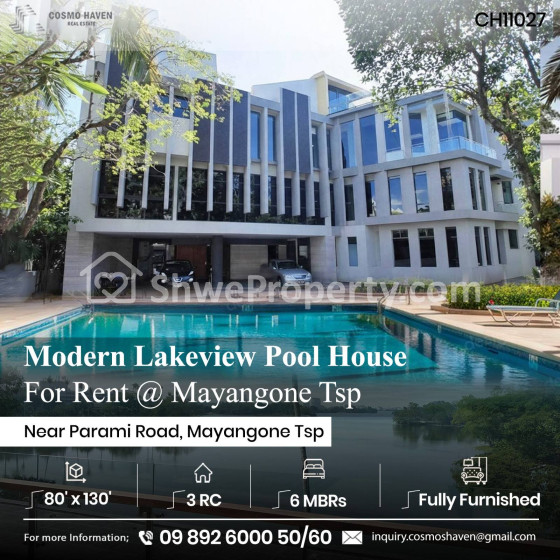 Just minutes from Parami Road ⏳️, one of Yangon’s main arteries 🏷 , this home offers easy access, modern interior, open-plan living room 🛋, fully equipped kitchen, balcony with lake view🌅, swimming pool 🏊♂️ 💫, ample car parking🚘, and a spacious yard perfect for kids to play. Ideal choice for your family 🏡 Perfect for family gatherings and entertaining guests 🎉