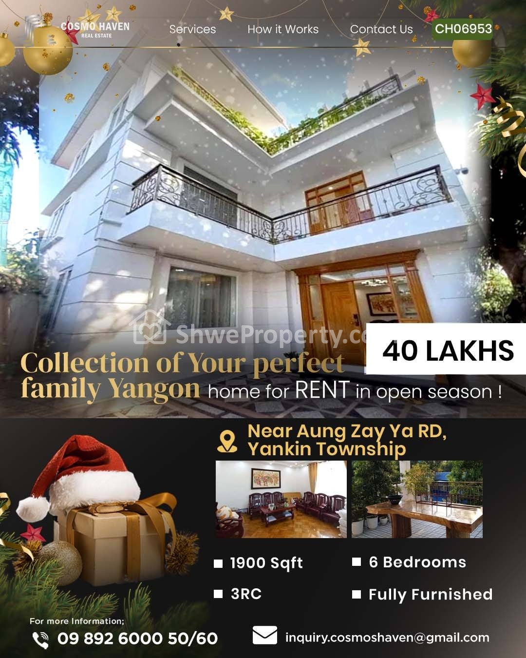 6 bedroom, 6 bathroom Privatehouse for rent in Yankin, Yangon