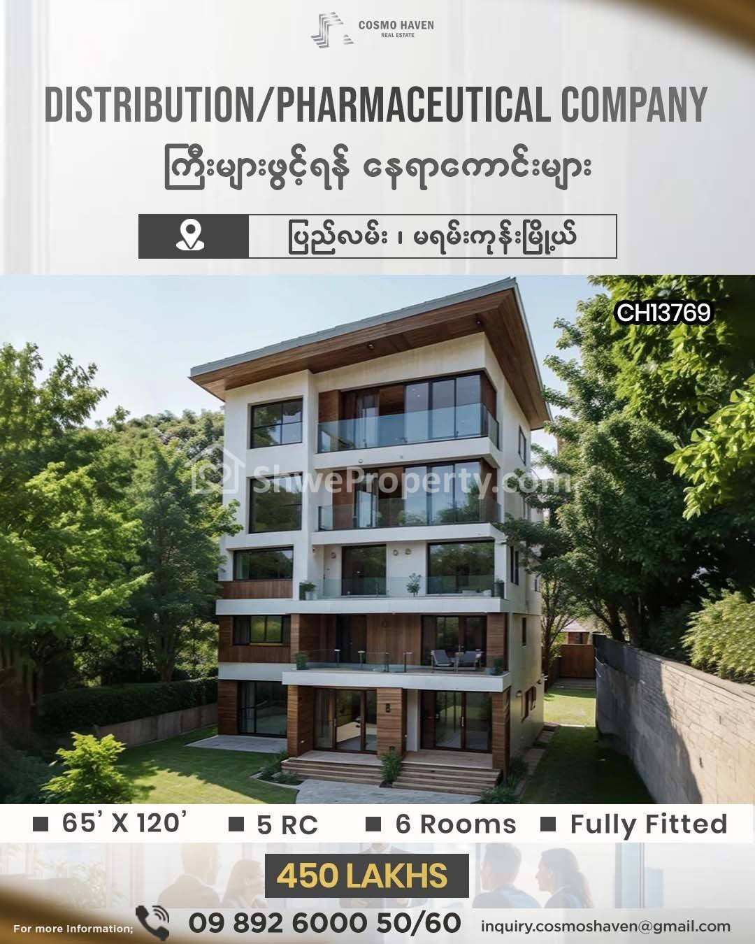 Property Name : Distribution Company ၊ Pharmaceutical Company များဖွင့်ရန်အတွက်နေရာကောင်းများ/Office For Rent In Yangon/09892600050,09892600060