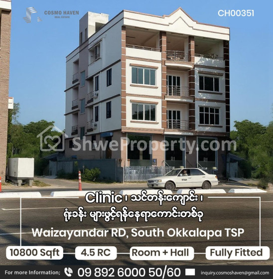 🍝Restaurant, 🛒Supermarket များနှင့် စည်ကားလျက်ရှိတဲ့✨ မိန်းလမ်းမကြီးပေါ်တည်ရှိတဲ့အတွက် ကားပါကင်အတွက် စိတ်ပူစရာမလိုပဲသွားလာရလွယ်ကူတဲ့အပြင် ညွှန်းရလွယ်ကူသော Location နေရာတစ်ခုမှ 🍃Clinic, 👩🏻💻Office ,တို့ဖွင့်ရန်အတွက် သင့်တော်သော နေရာကောင်းတစ်ခုမှ စိတ်ကြိုက် Decorations ဖြင့် ပြင်ဆင်ဖွင့်လှစ်နိုင်မည့် နေရာကောင်းတစ်ခုကို လူကြီးမင်းတို့အတွက် Cosmo Haven Real က နေရွေးချယ်ဖော်ပြပေးလိုက်ပါတယ်ရှင့်🤗🤗🤗