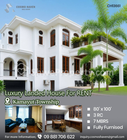 Property Name : ကမာရွတ်မြို့နယ်ရှိ နေရာကောင်းလုံးချင်အိမ်အငှား/Landed House for Rent Kamayut Township in Yangon
