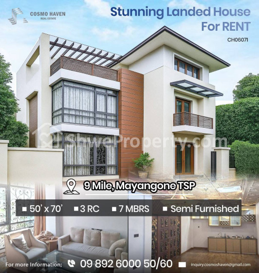 Property Name : မရမ်းကုန်းမြို့နယ်ရှိနေရာကောင်းလုံးချင်းအိမ်အငှား/Landed House for Rent Mayangone Township in Yangon/09892600050,09892600060