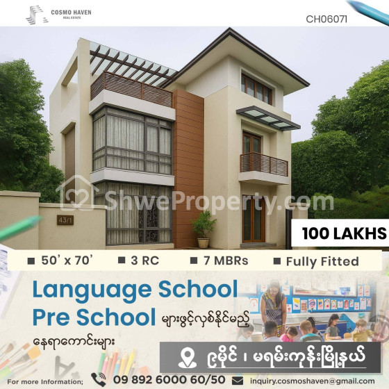 🈵🈵🈵 Language Centre,🏫Pre - School 🏨Training Centreများကို ရန်ကုန်မြိုရှိ မြိုနယ်စုံနေရာကောင်းများတွင် ဖွင့်လှစ်ချင်တဲ့လူကြီးမင်းများအတွက် သွားလာရလွယ်ကူပြီး၊ လူစည်ကားသည့် နေရာများတွင်ဖြစ်လို လုပ်ငန်းရှင်လူကြီးမင်းတို့ အချိန်မကုန်ဘဲရွှေးချယ်နိုင်စေရန် Cosmo Haven မှတစုတစည်းတည်းဖော်ပြပေးလိုက်ပါတယ်ခင်ဗျာ။