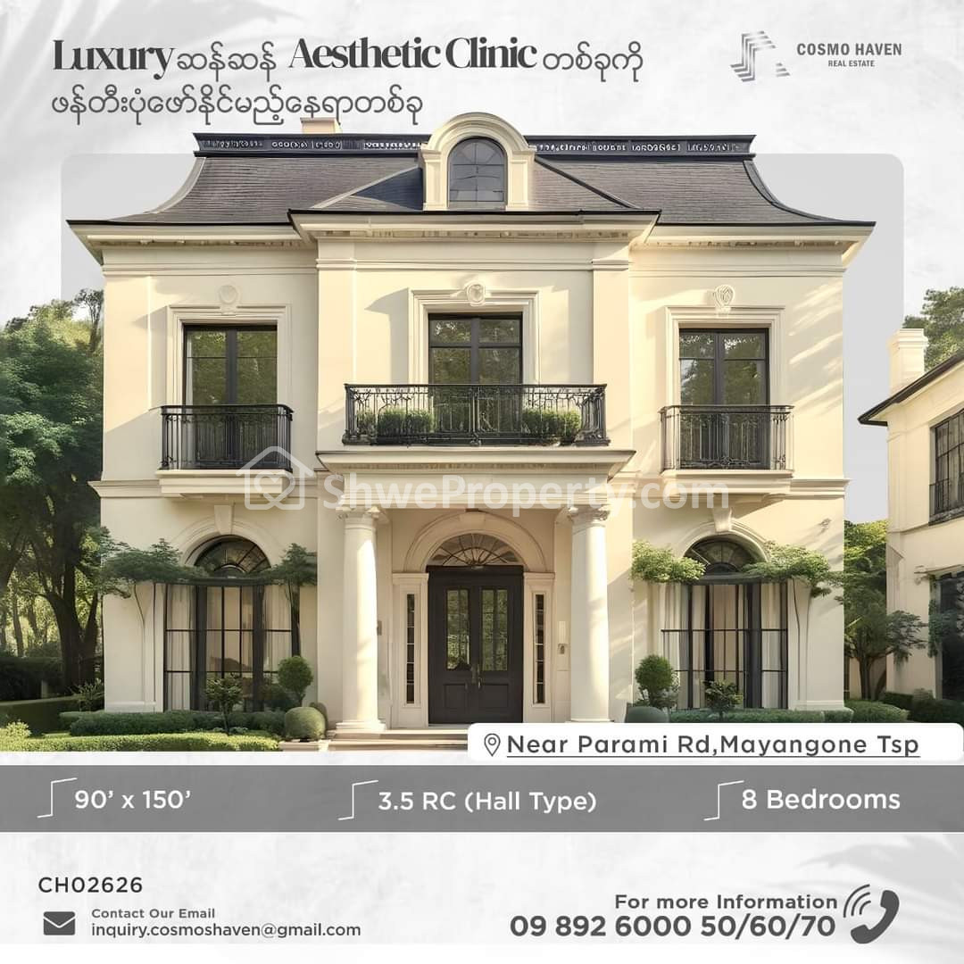🍀 Aesthetic Clinic🍀 ကို Luxury ဆန်ဆန်ဖွင့်လှစ်ရန်အကောင်းဆုံးနေရာတစ်ခုဖြစ်သည့်အပြင် အခန်းကျယ်များစွာဖြင့်ဖွဲ့စည်းထားပြီး Carparking အလုံအလောက်ရရှိနိုင်တဲ့ အသင့်အသုံးပြုနိုင်တဲ့ ခမ်းနားထည်ဝါတဲ့လုံးချင်းအိမ် နေရာကောင်းတစ်ခုကို လုပ်ငန်းရှင်တို့ မှန်ကန်စွာရွေးချယ်နိုင်စေရန် Cosmo Haven Real Estate ကနေ ရွေးချယ်ဖော်ပြပေးလိုက်ပါတယ်ရှင့်💁