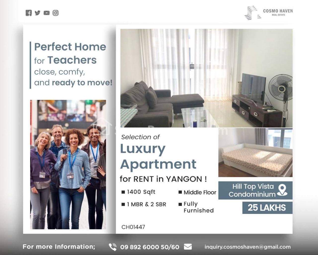 Property Name : အလုံမြို့နယ် Hill Top Vista Condominium အငှား / Luxury Condominium for Rent Ahlone Township in Yangon