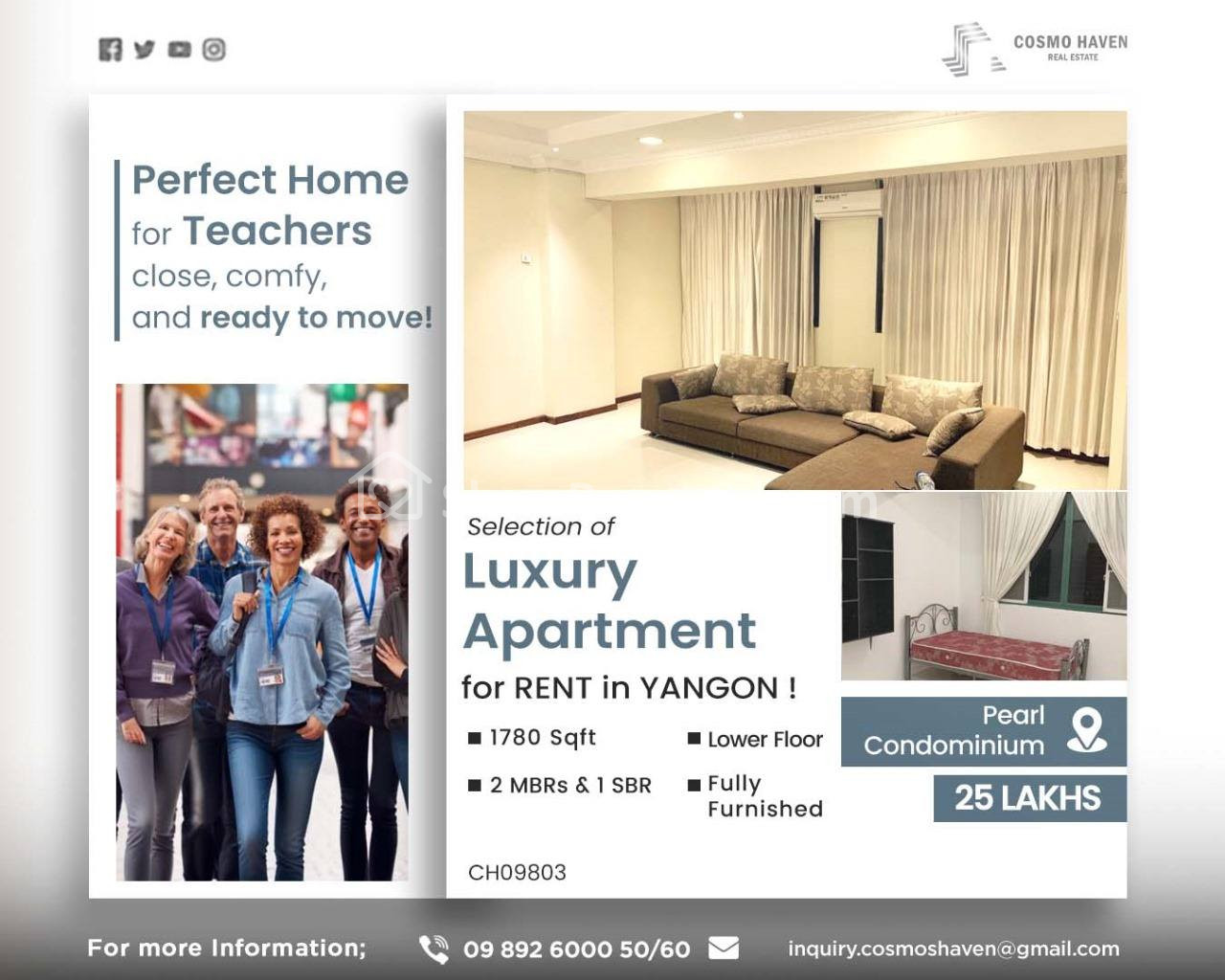 Teachers! Here is a collection of Luxury Condominiums with various types of Rooms FOR RENT in Yangon 📍🏙
