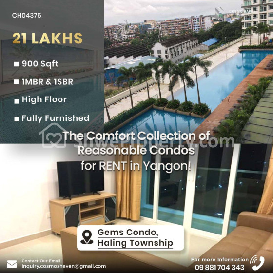 Cozy 2-Bedrooms Condominium for RENT @21Lakhs @Gems Condo @ Hlaing Tsp, Yangon 🏢✨