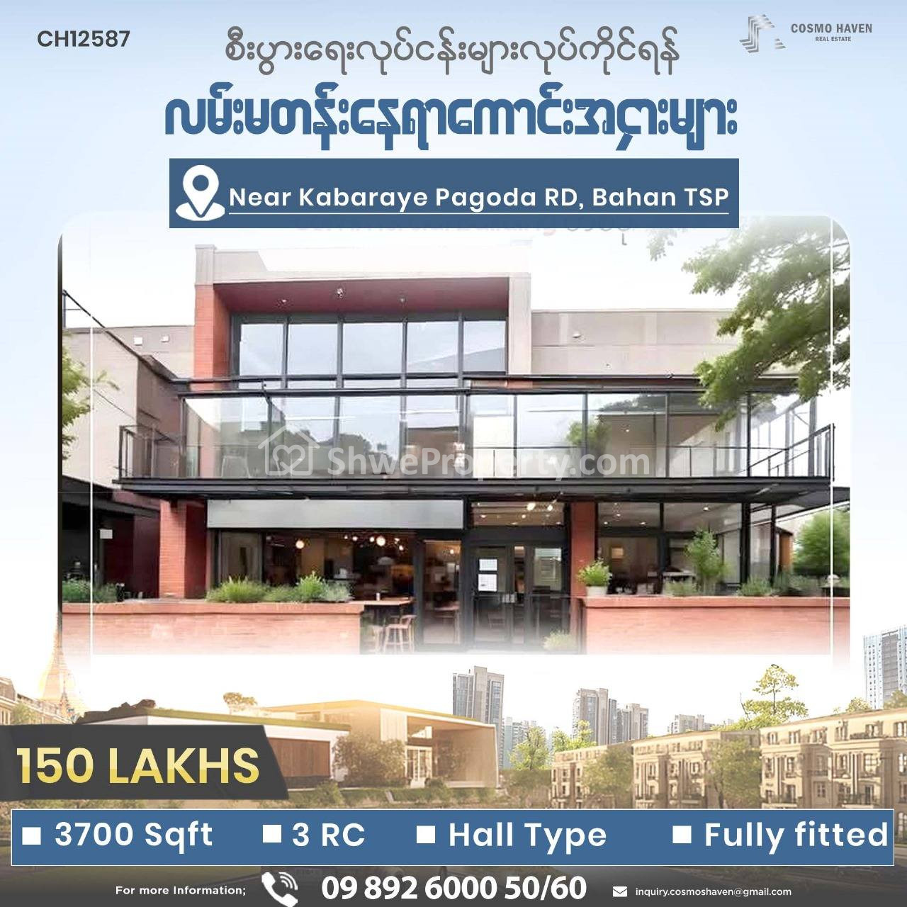 လူကြီးမင်းတို့၏လုပ်ငန်းနှင့်ကိုက်ညီမှုရှိသော အိမ်ခြံမြေနေရာအချက်အလက်များကို အချိန်ခနအတွင်းဝင်ရောက်ရွေးချယ်ရှာဖွေနိုင်ပြီး အကောင်းမွန်ဆုံး ဝန်ဆောင်မှုများကိုရယူရန် Cosmo haven real estateကို ယခုဘဲဆက်သွယ်လိုက်ပါ...
