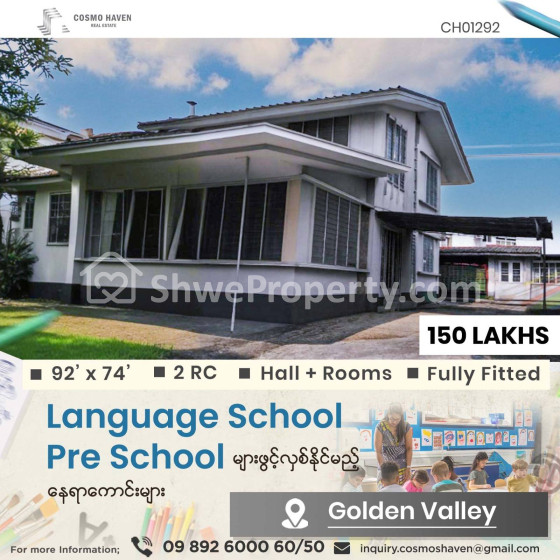 Property Name : Language Centre, Pre - School, Training Centreများဖွင့်လှစ်နိုင်မည့်နေရာကောင်းများ/Office for Rent in Yangon/09892600050,09892600060