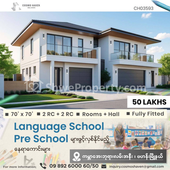 🈵🈵🈵 Language Centre,🏫Pre - School 🏨Training Centreများကို ရန်ကုန်မြိုရှိ မြိုနယ်စုံနေရာကောင်းများတွင် ဖွင့်လှစ်ချင်တဲ့လူကြီးမင်းများအတွက် သွားလာရလွယ်ကူပြီး၊ လူစည်ကားသည့် နေရာများတွင်ဖြစ်လို လုပ်ငန်းရှင်လူကြီးမင်းတို့ အချိန်မကုန်ဘဲရွှေးချယ်နိုင်စေရန် Cosmo Haven မှတစုတစည်းတည်းဖော်ပြပေးလိုက်ပါတယ်ခင်ဗျာ။