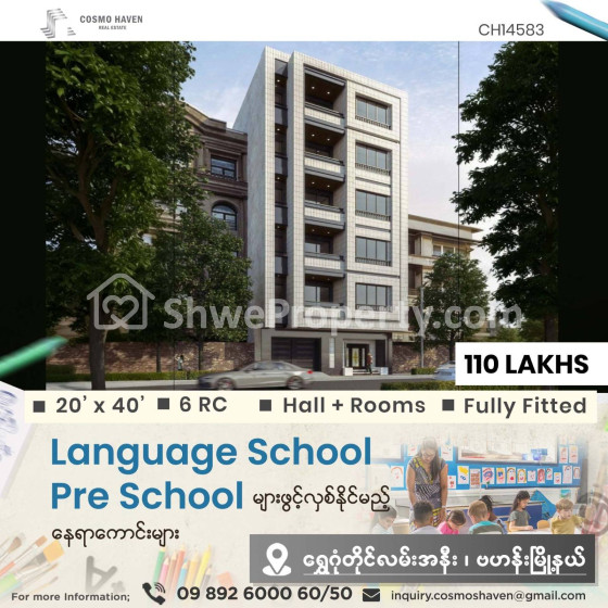 🈵🈵🈵 Language Centre,🏫Pre - School 🏨Training Centreများကို ရန်ကုန်မြိုရှိ မြိုနယ်စုံနေရာကောင်းများတွင် ဖွင့်လှစ်ချင်တဲ့လူကြီးမင်းများအတွက် သွားလာရလွယ်ကူပြီး၊ လူစည်ကားသည့် နေရာများတွင်ဖြစ်လို လုပ်ငန်းရှင်လူကြီးမင်းတို့ အချိန်မကုန်ဘဲရွှေးချယ်နိုင်စေရန် Cosmo Haven မှတစုတစည်းတည်းဖော်ပြပေးလိုက်ပါတယ်ခင်ဗျာ။