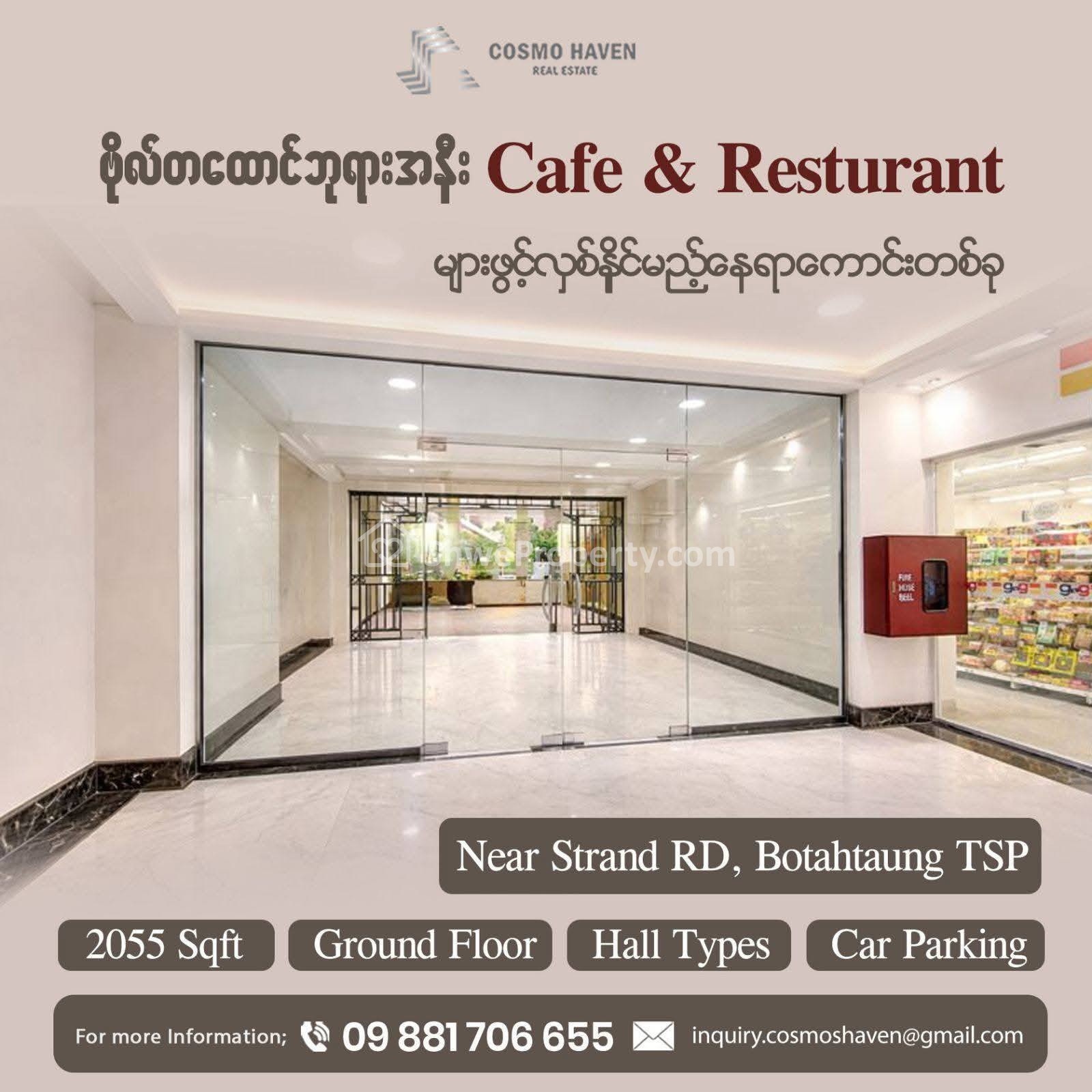 Property Name : Beauty Salon ၊ Floral Shop များဖွင့်ရန်Location ကောင်းသော နေရာကောင်းတစ်ခု/Office for Rent Botahaung Township in Yangon/09892600050,09892600060