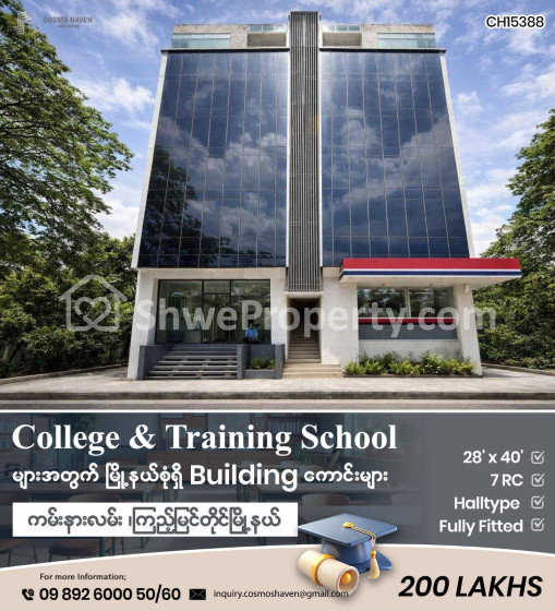 Property Name : Working Space ကျယ်ကျယ်ဖြင့် Collegeများ၊ Training School များကို ဖွင့်လှစ်ရန် အတွက်နေရာကောင်း များ/Office for Rent in Yangon/09892600050,09892600060