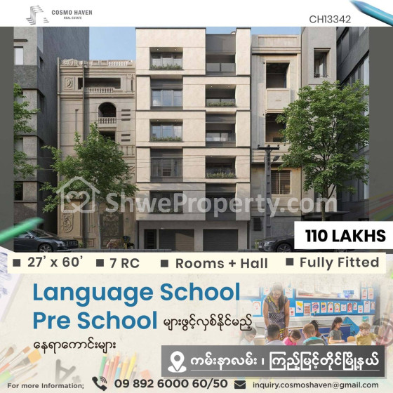 🈵🈵🈵 Language Centre,🏫Pre - School 🏨Training Centreများကို ရန်ကုန်မြိုရှိ မြိုနယ်စုံနေရာကောင်းများတွင် ဖွင့်လှစ်ချင်တဲ့လူကြီးမင်းများအတွက် သွားလာရလွယ်ကူပြီး၊ လူစည်ကားသည့် နေရာများတွင်ဖြစ်လို လုပ်ငန်းရှင်လူကြီးမင်းတို့ အချိန်မကုန်ဘဲရွှေးချယ်နိုင်စေရန် Cosmo Haven မှတစုတစည်းတည်းဖော်ပြပေးလိုက်ပါတယ်ခင်ဗျာ။