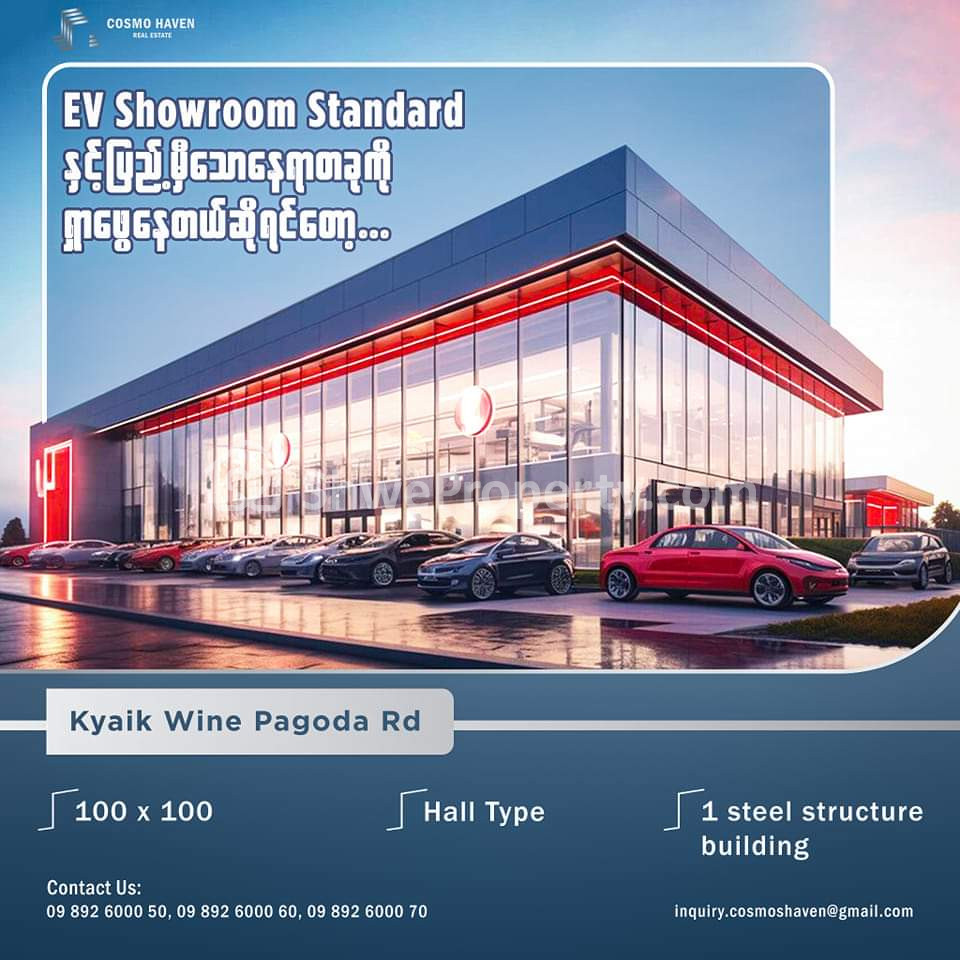 မရမ်းကုန်းမြို့နယ် မိန်းလမ်းမကြီး ပေါ်ရှိ EV Showroom များဖွင့်ရန်အတွက် သတ်မှတ်ထားသော စံချိန်စံညွန်း အကျယ်အ၀န်းများနှင့် ပြည့်မှီတဲ့ Building ပါ၀င်သော Showroom နေရာကောင်း တစ်ခုကို ဈေးနှုန်းအသင့်အတင့်ဖြင့် ငှားရန်နိုင်ရန်အတွက် Automotive လုပ်ငန်းရှင်များအတွက် Cosmo Haven မှမိတ်ဆက်ပေးပါရစေရှင့်
