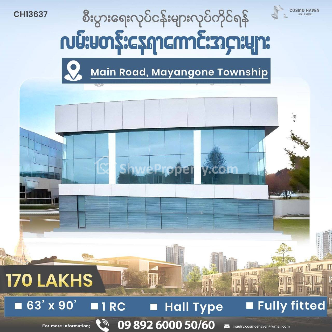 လူကြီးမင်းတို့၏လုပ်ငန်းနှင့်ကိုက်ညီမှုရှိသော အိမ်ခြံမြေနေရာအချက်အလက်များကို အချိန်ခနအတွင်းဝင်ရောက်ရွေးချယ်ရှာဖွေနိုင်ပြီး အကောင်းမွန်ဆုံး ဝန်ဆောင်မှုများကိုရယူရန် Cosmo haven real estateကို ယခုဘဲဆက်သွယ်လိုက်ပါ...